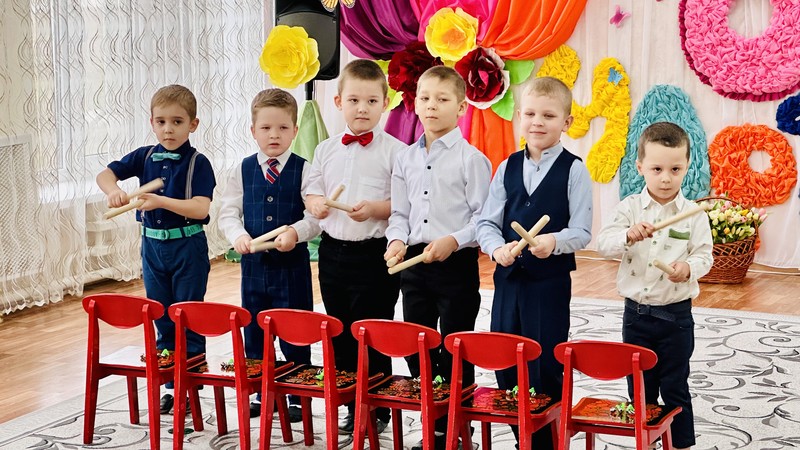 Мамочкам посвящали танцы и исполнение на инструментах музыкального оркестра.