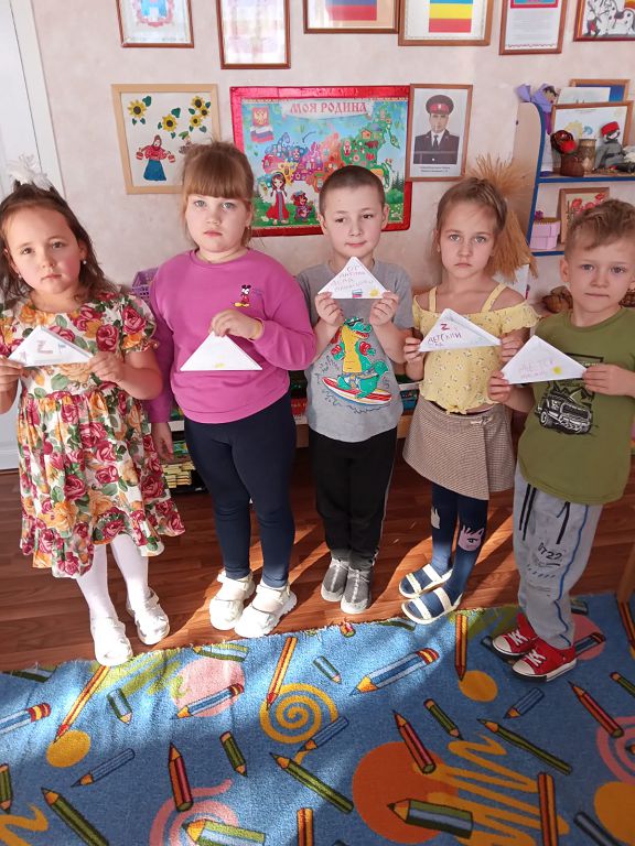 В течении недели, воспитанники подготовительной группы "Лазорик" ,старшей группы "Звёздочки" и логопедической группы "Подсолнушки" совместно с воспитателями Артамоновой Т.Г. и Степикиной С.В. писали письма и рисовали рисунки в рамках акции "Письмо российскому солдату".