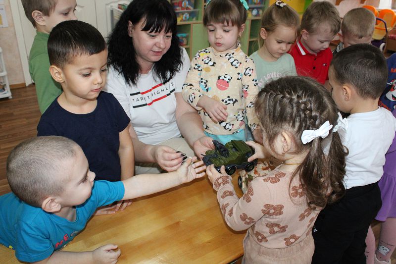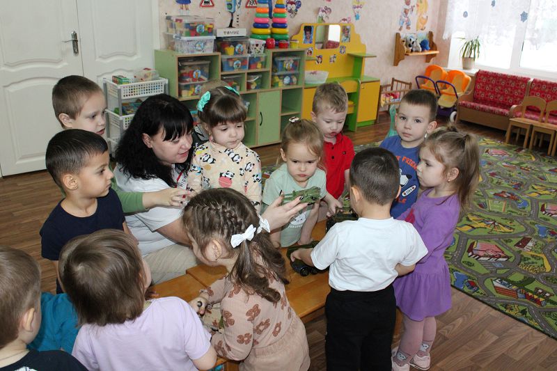 В рамках месячника оборонно-массовой и патриотической работы, во 2 младшей группе "Бусинки" (воспитатель Колесова И.А.), проведена беседа "Военная техника". Малыши познакомились с видами военной техники. Воспитатель показала детям военные машины и самолёты, рассказала о том для каких задач эта техника предназначена.