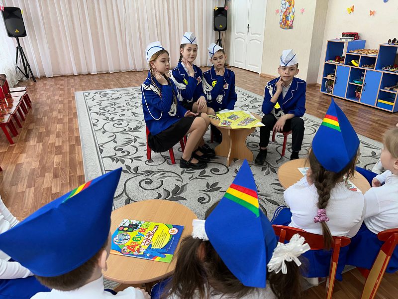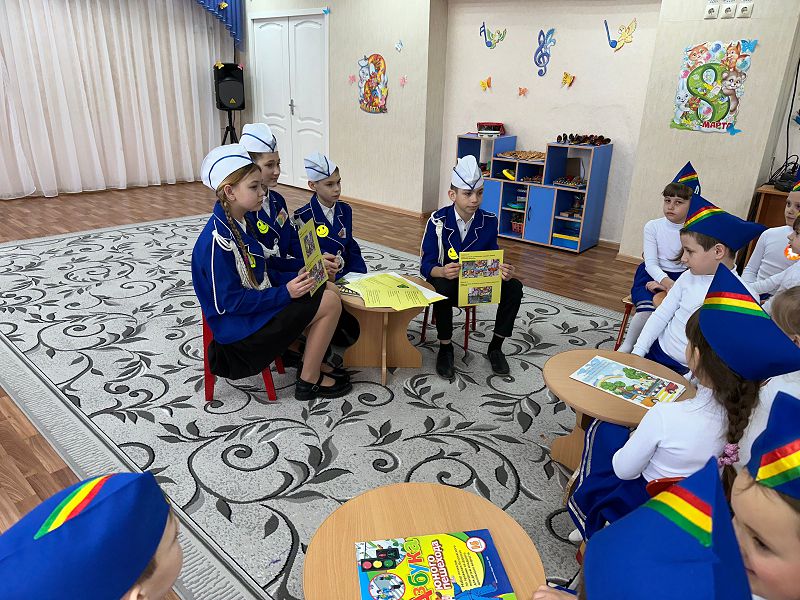 В ходе занятия ребята из команды «БОНД» поделились с дошкольниками своими знаниями в области безопасного поведения на дороге, рассказали о том какие правила необходимо соблюдать пешеходам и пассажирам, а так же как оказать первую медицинскую помощь пострадавшим при ДТП.