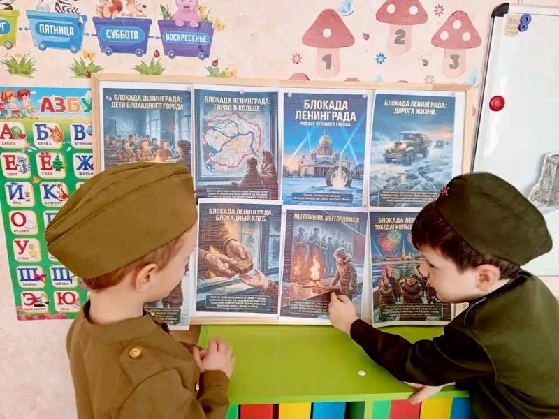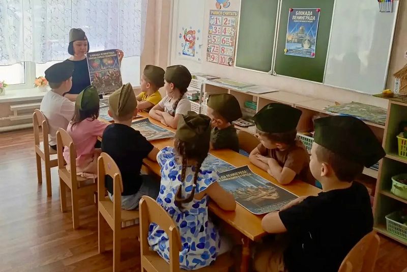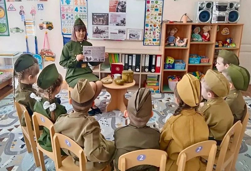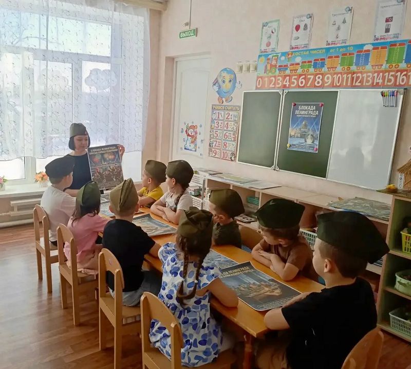 С воспитанниками из логопедической группы «Бусинки», подготовительной группы «Лисята», средней группы «Лучики» и старшей группы «Звездочки», были проведены беседы о жизни жителей осаждённого города.