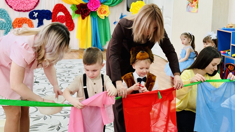 К ребятам в гости приходили сказочные герои Медведь, Весна и Кикимора, которые подарили радостное настроение, веселье и задор. Дети исполняли трогательные и душевные песни для мам и бабушек, заводные танцы, игры.